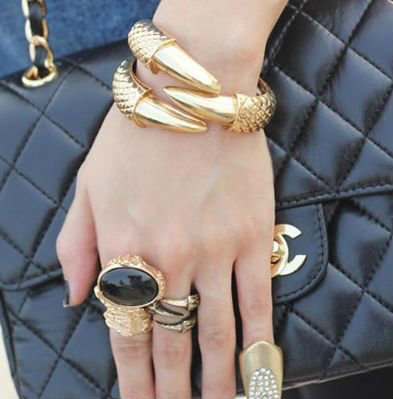 Oi meninas, o novo it acessório do momento são os claw bracelets (braceletes de garra, em inglês) que são pulseiras em formato de garras de animais que fecham o pulso. Super diferente e entrando na linha de tendências de animais, existem outras versões de garrinhas como anéis e brincos.